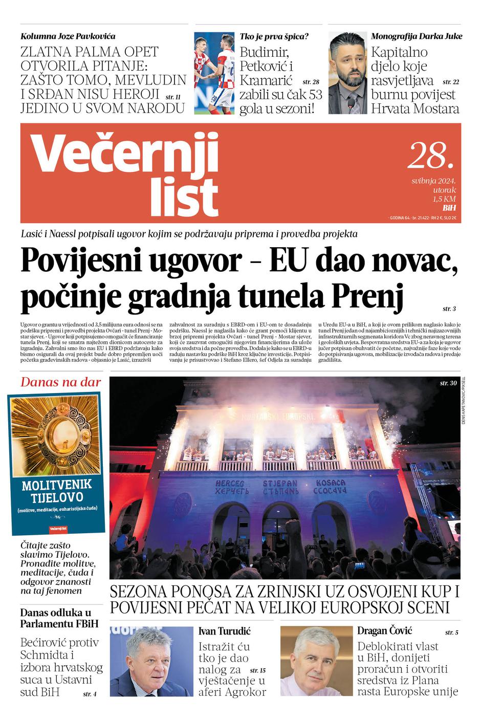 U Večernjem listu BiH u tiskanom izdanju u utorak, 28. svibnja 2024. godine možete pročitati...