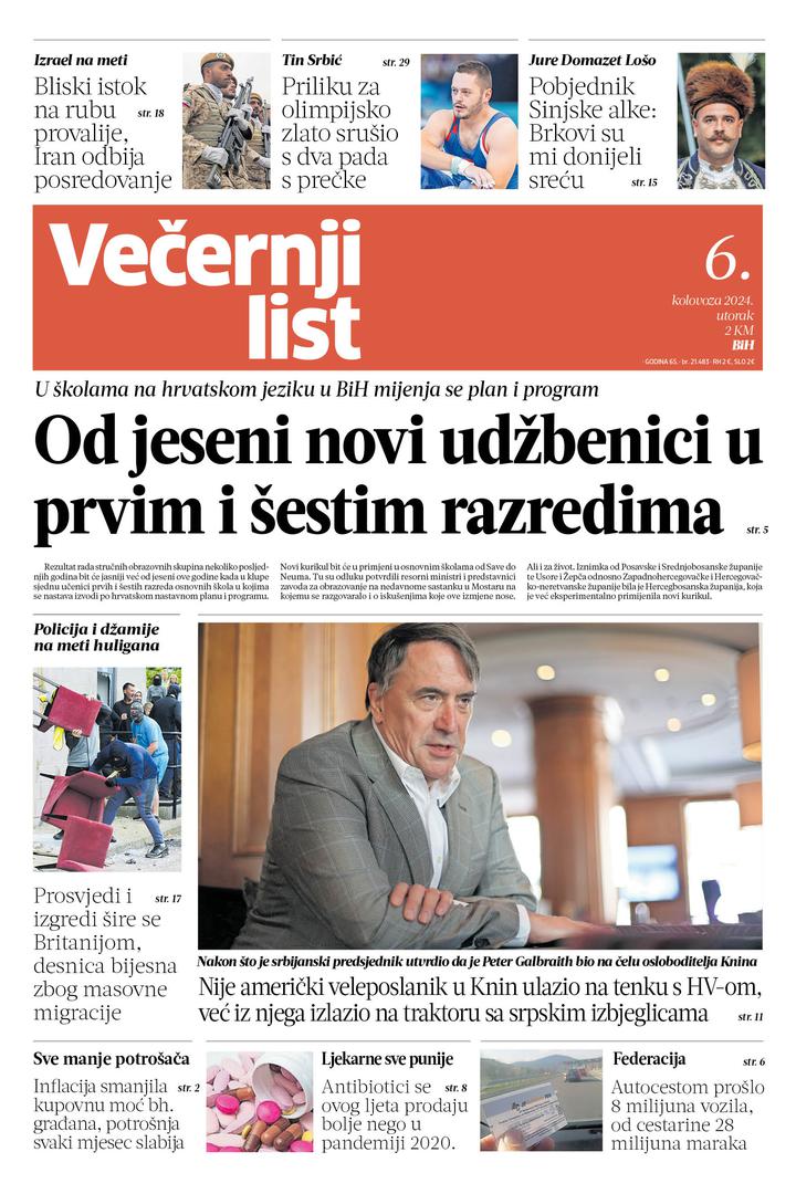 U Večernjem listu BiH u tiskanom izdanju u utorak, 6. kolovoza 2024. godine možete pročitati...
