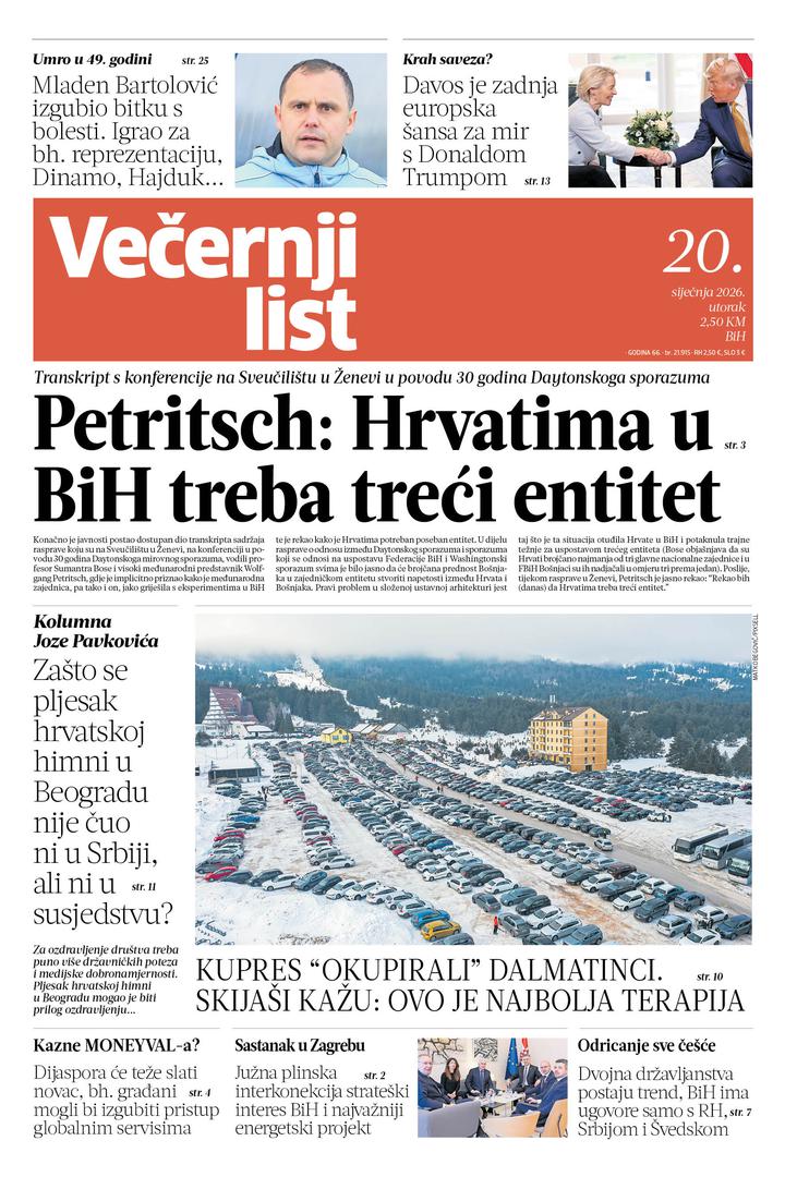 Pročitajte što vam ovog utorka donosi Večernji list BiH