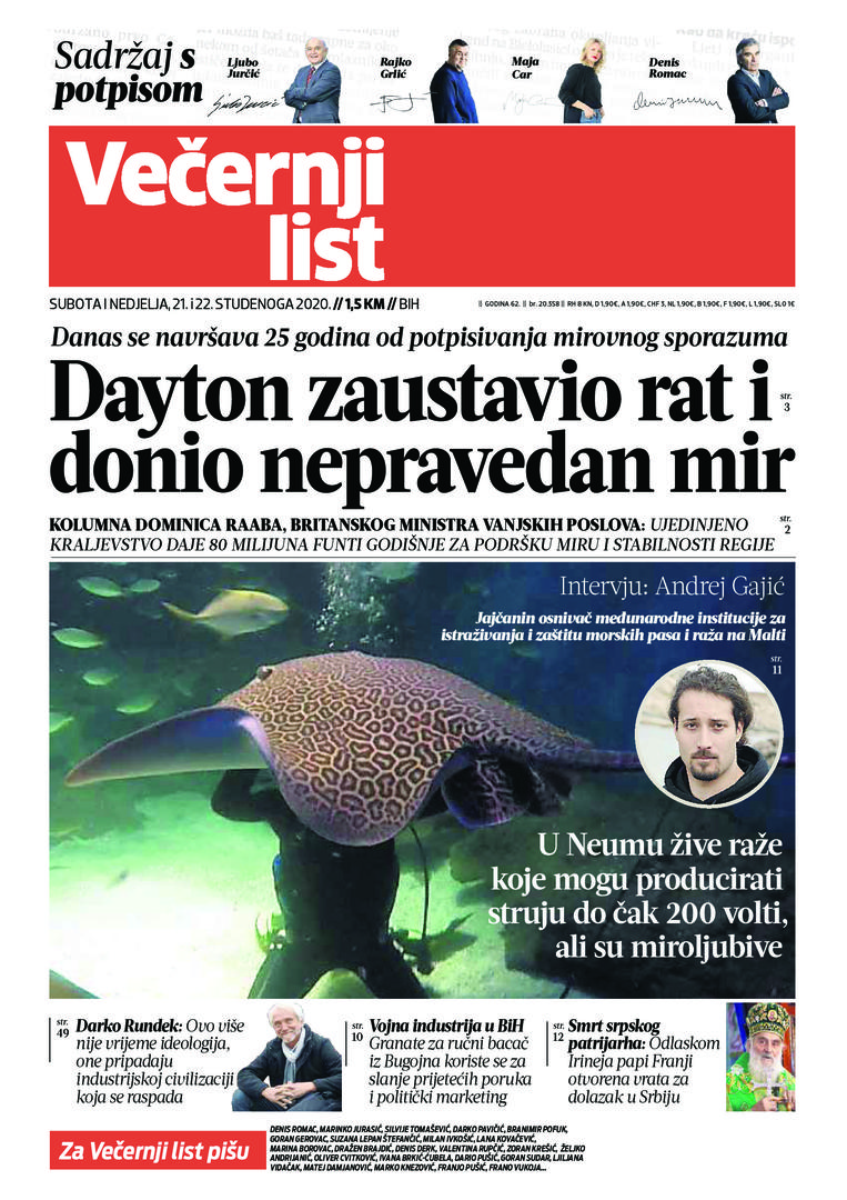 U Večernjem listu BiH u tiskanom izdanju u dvobroju ovoga vikenda, subotu i nedjelju, 21. i 22. studenoga 2020. godine pročitajte: