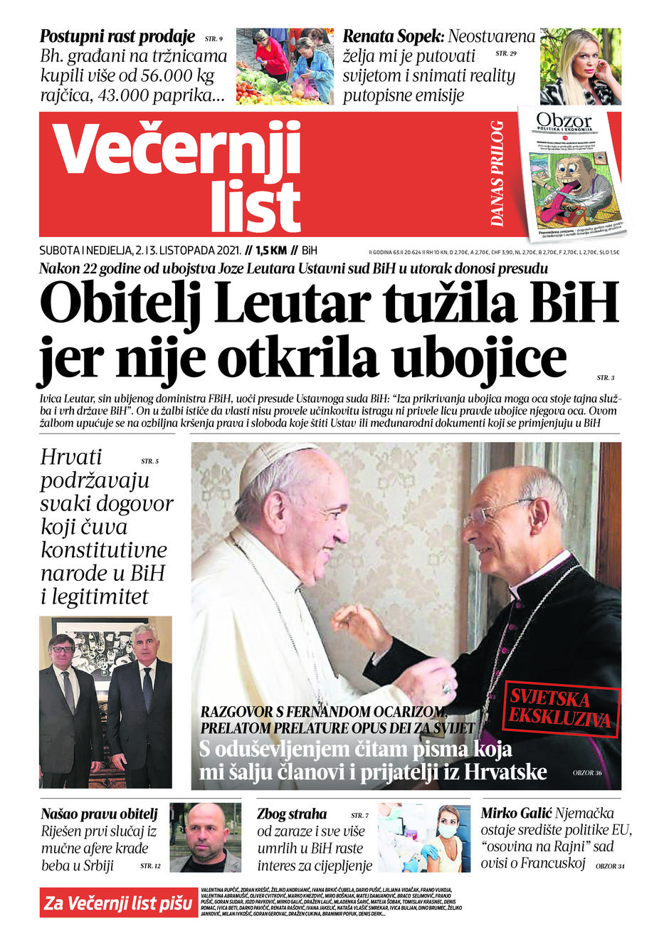 Dvobroj Večernjeg lista BiH i ovog vikenda, 2. i 3. listopada donosi zanimljive priče, razgovore, analize...