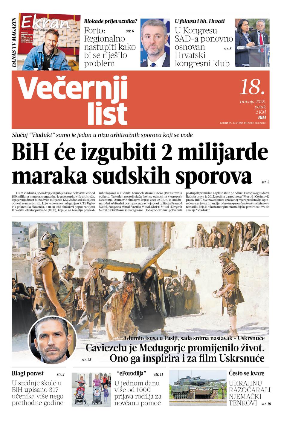 Pročitajte što vam ovoga petka donosi Večernji list BiH