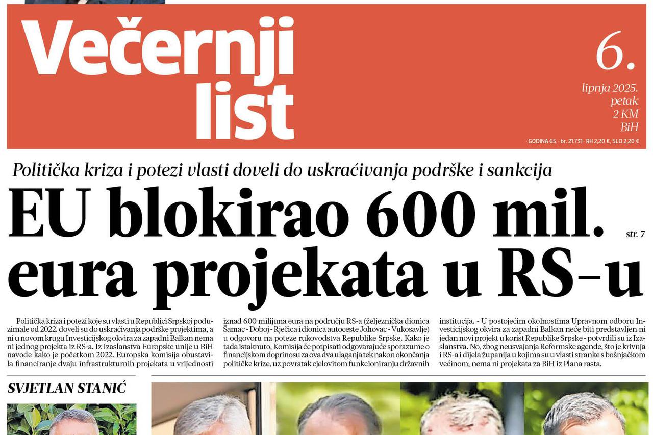 Pročitajte što vam ovoga petka donosi Večernji list BiH