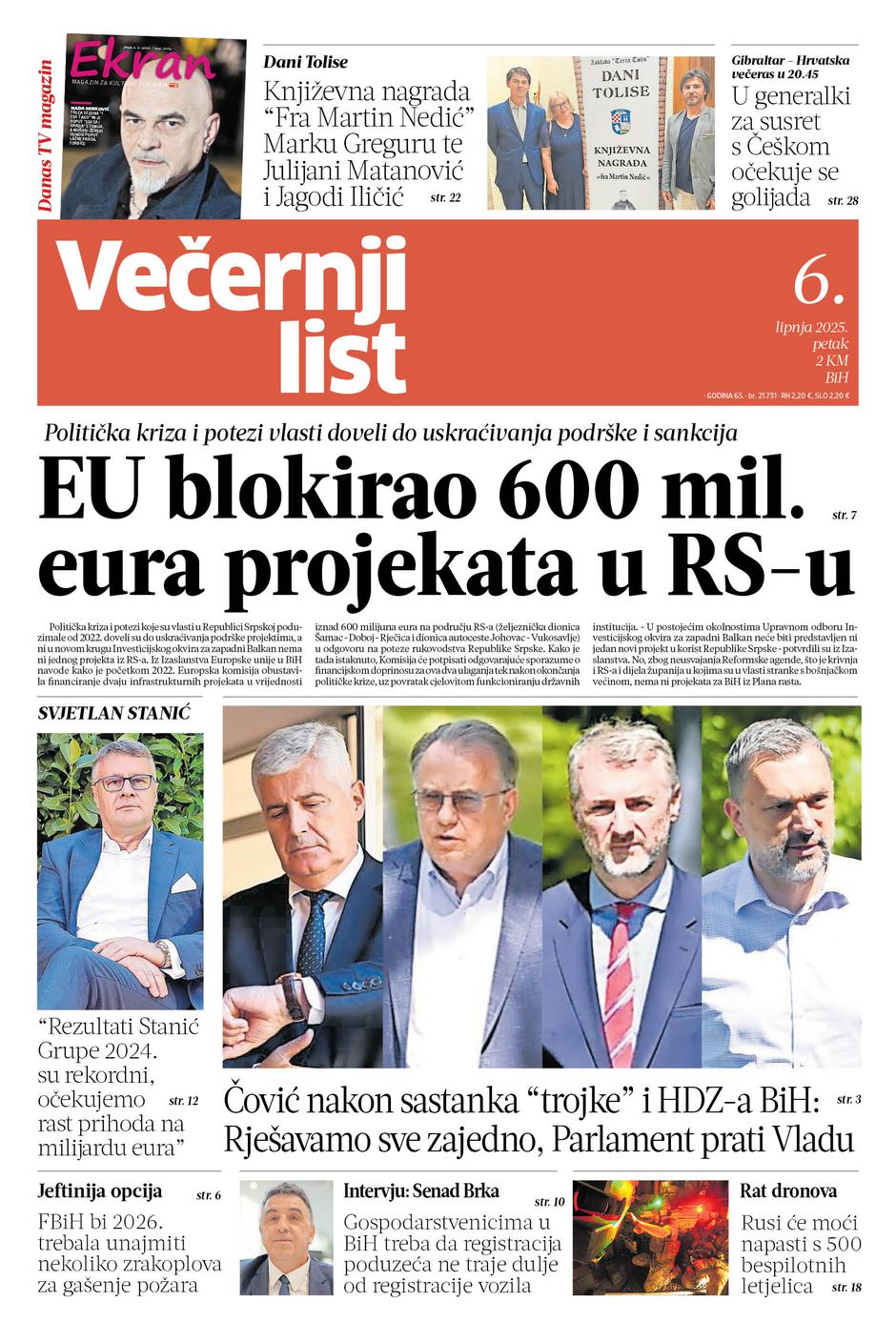 U tiskanom izdanju Večernjeg lista BiH, u petak 6. lipnja 2025. godine, pročitajte