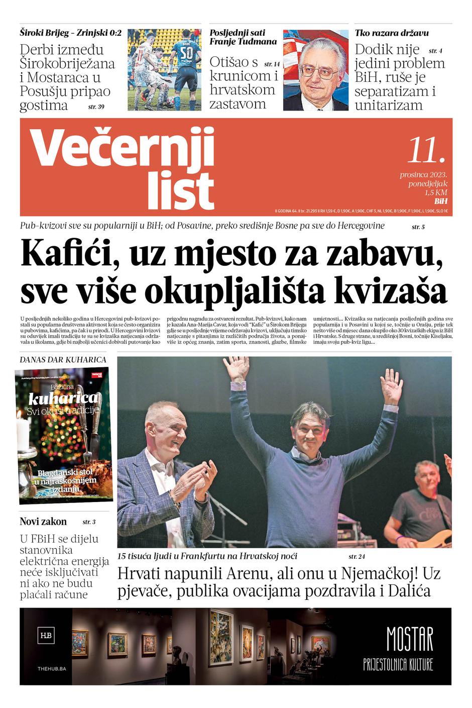 U Večernjem listu BiH u tiskanom izdanju u ponedjeljak, 11. prosinca 2023. godine pročitajte: