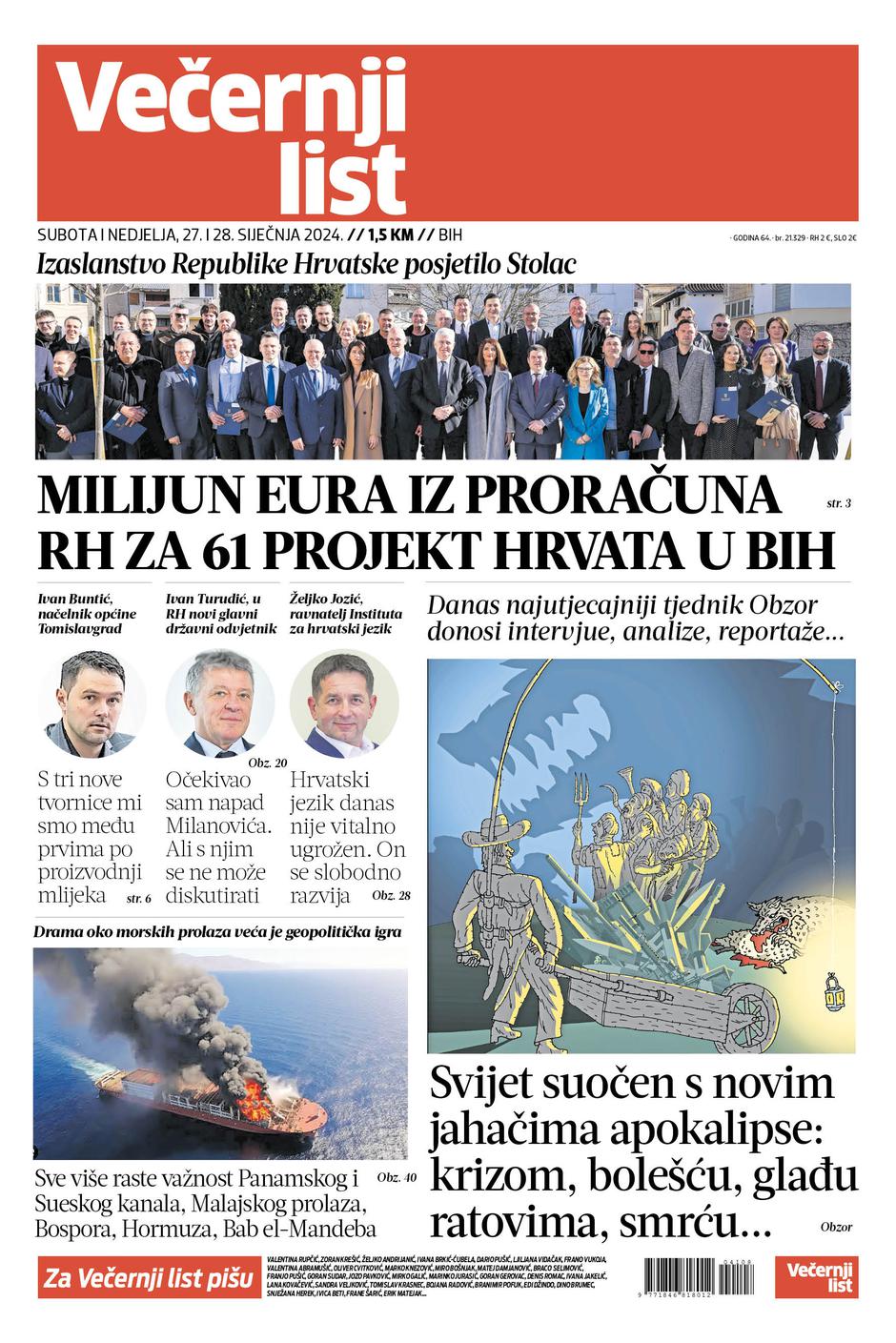 Dvobroj Večernjeg lista BiH ovog vikenda, 27. i 28. siječnja 2024. godine donosi zanimljive priče, razgovore, analize...