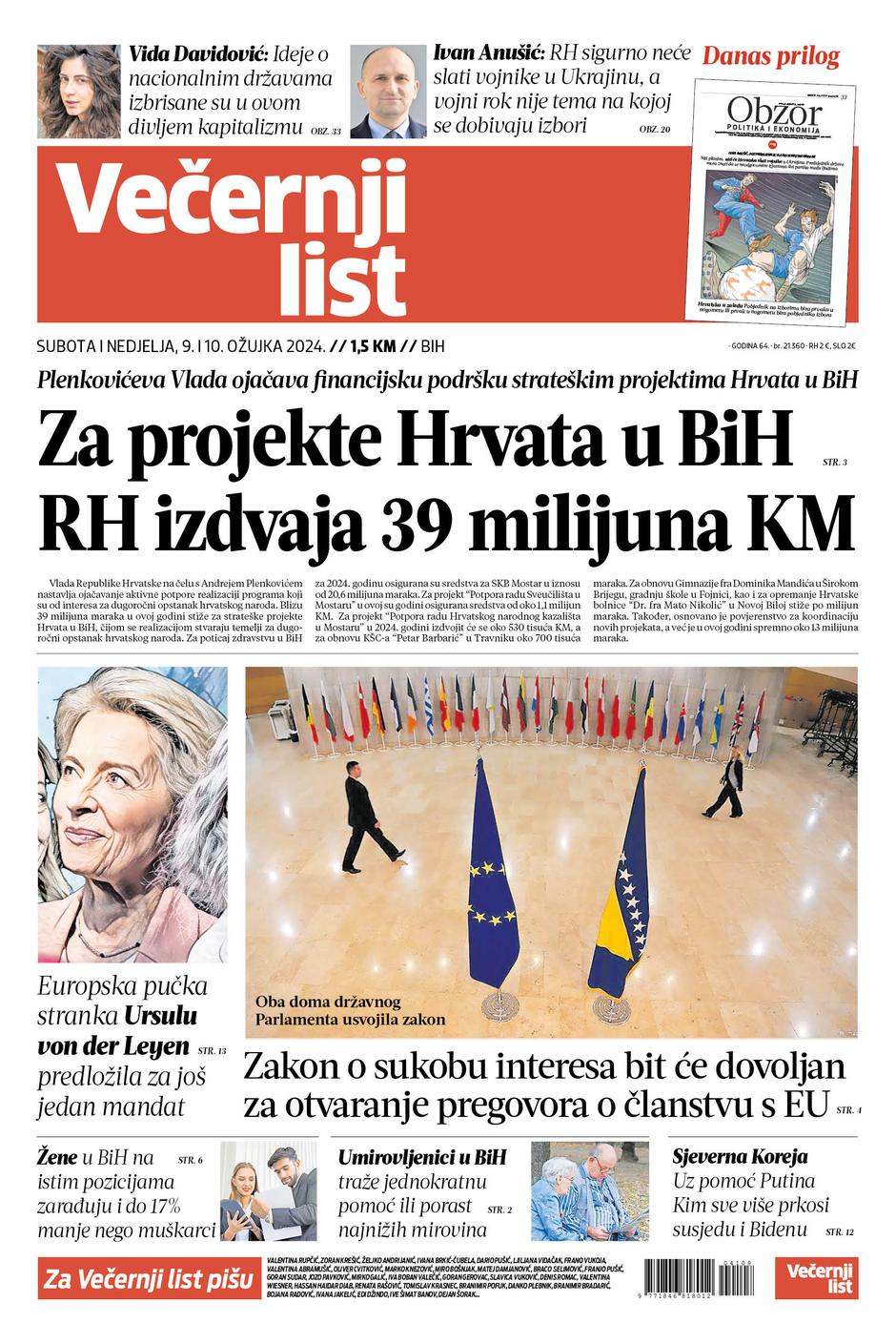 Dvobroj Večernjeg lista BiH ovog vikenda, 9. i 10. ožujka 2024. godine donosi zanimljive priče, razgovore, analize...