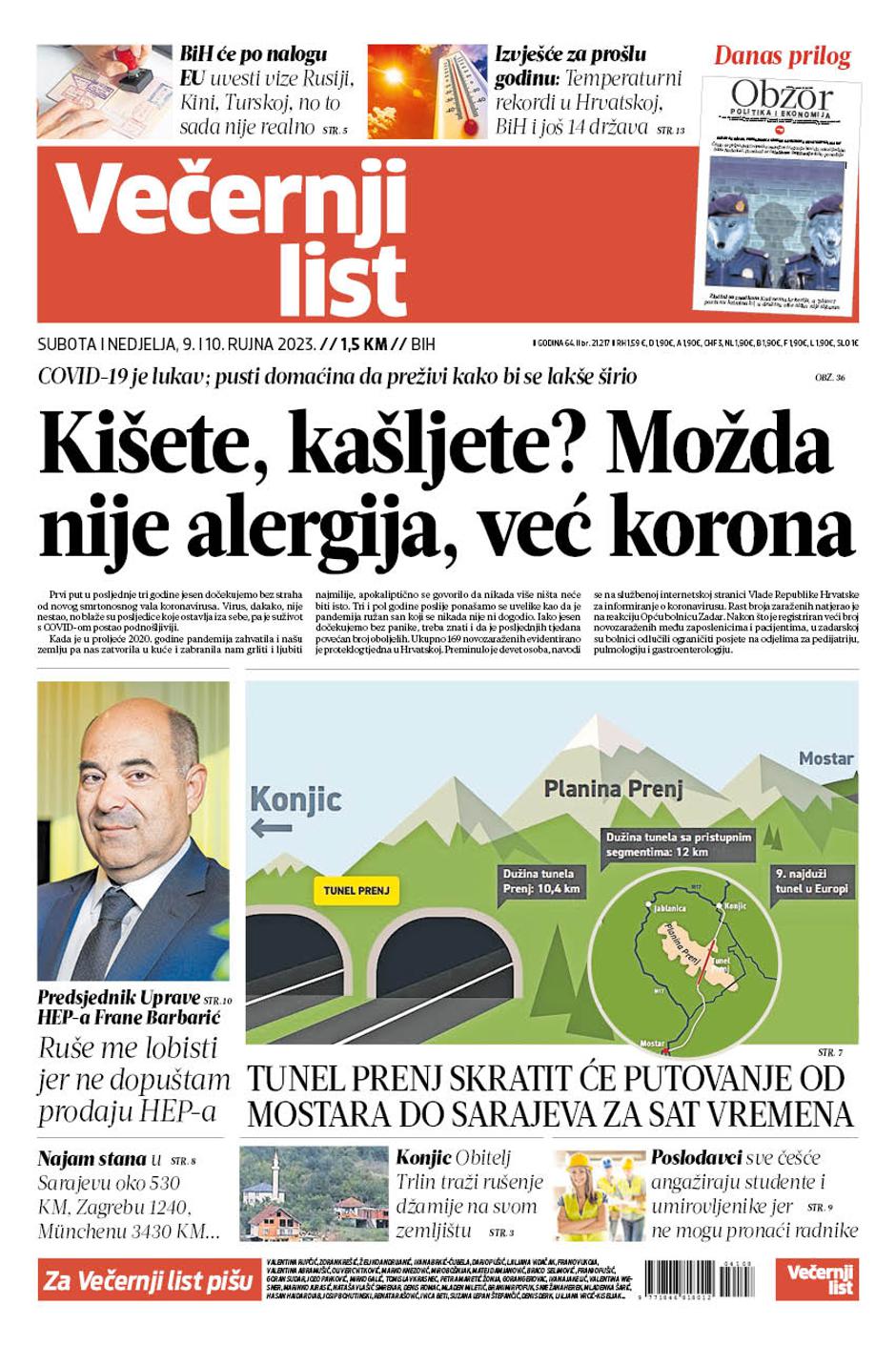 Dvobroj Večernjeg lista BiH i ovog vikenda, 9. i 10. rujna 2023. godine donosi zanimljive priče, razgovore, analize...