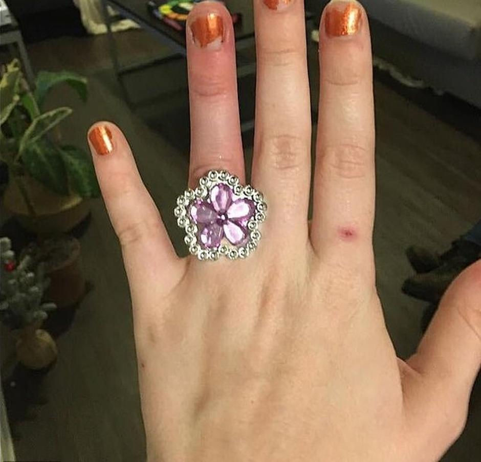 Fotografija prstena u obliku cvijeta s ljubičastim dijamantom objavljena je u grupi 'To je to, posramljujem prsten', a buduća mladenka se pohvalila kako je riječ o prstenu koji je izrađen po narudžbi samo za nju.