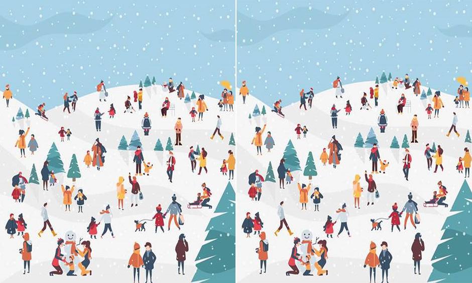 Ukoliko ste 'zapeli', tu je mala pomoć - obratite pažnju na desni gornji kut ilustracije. Tu se skriva razlika. Naime, na jednoj je dijete koje radi snješka, a na drugoj tog djeteta nema, prenosi 24sata.hr.