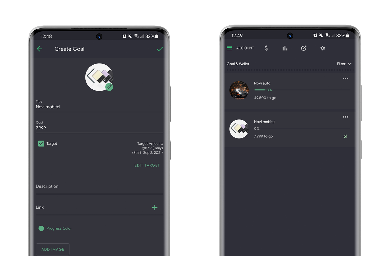 Nakon što unesemo datum i iznos cilja, aplikacija nam automatski računa koliko bismo dnevno novaca trebali odvajati u taj budžet kako bismo do tog roka postigli financiranje cilja. Thriv sebe naziva “virtualnom kasicom prasicom” koja vam snove može pretvoriti u stvarnost. Prikaz koliko smo blizu cilja, odnosno ostvarenja svojih snova u aplikaciji, je fora stvar, budući da vas može motivirati na češće odvajanje. U besplatnoj verziji aplikacije moguće je unijeti pet ciljeva.