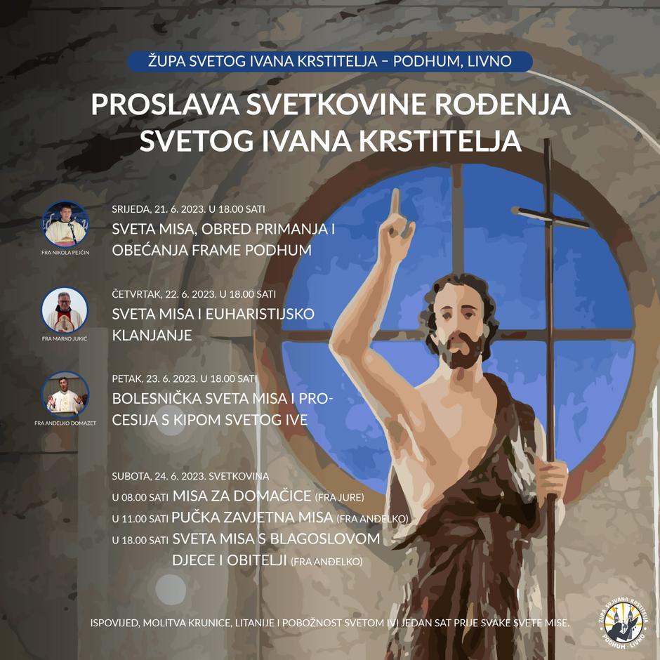 „Dragi vjernici i prijatelji župe svetog Ivana Krstitelja u Podhumu, s radošću vas pozivamo da se pridružite proslavi našeg zaštitnika. Ovogodišnja svečanost bit će posebna prigoda za okupljanje, molitvu i zahvalnost za Božju milost koju nam daruje. Vidimo se!“, napisao je u pozivu fra Jurica Periša, župnik.
