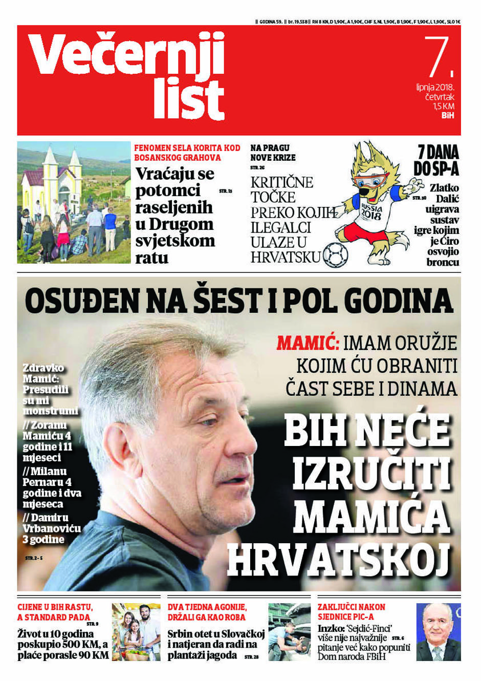 U Večernjem listu BiH u tiskanom izdanju u četvrtak, 7. lipnja 2018. godine čitajte:
