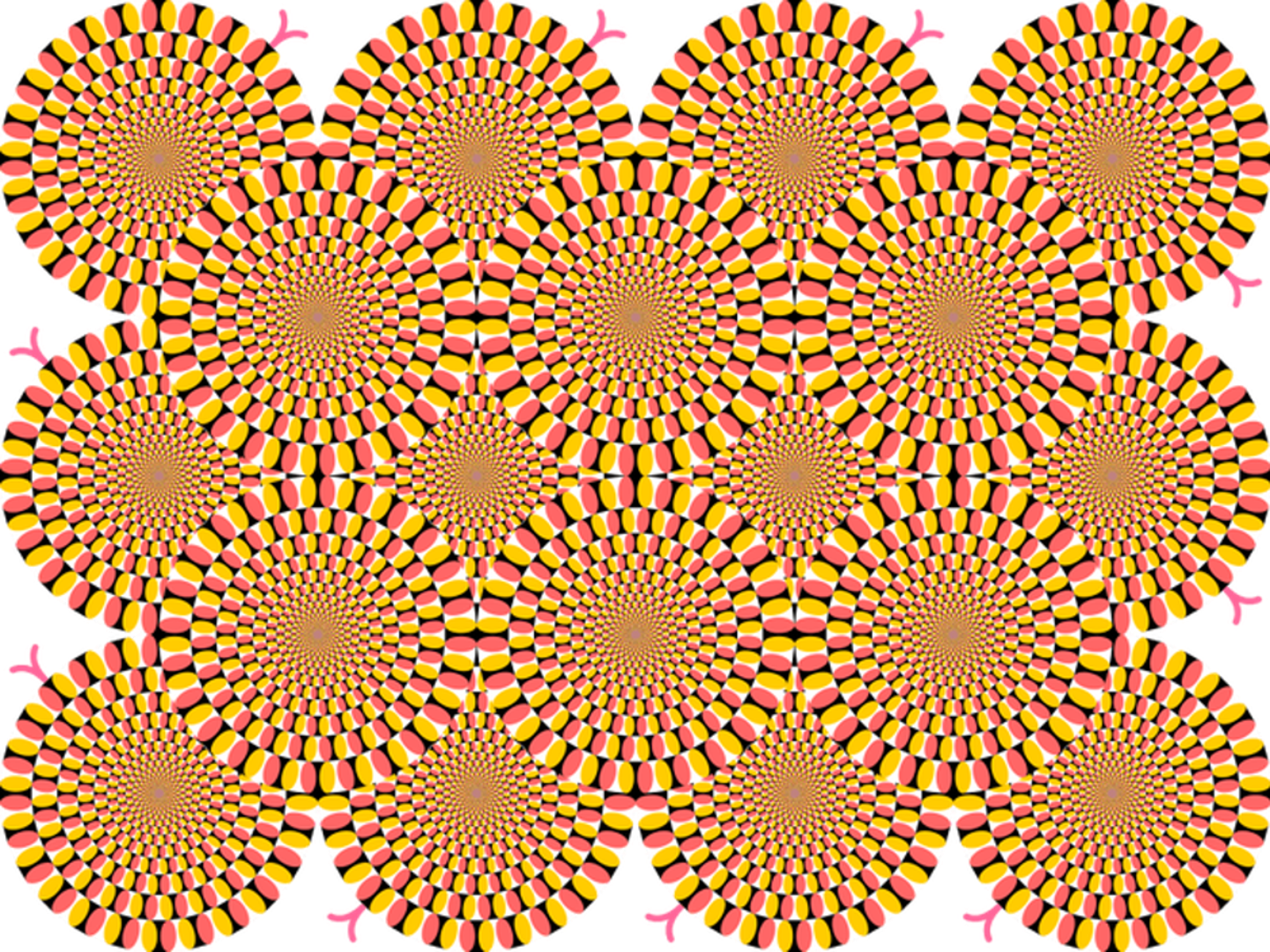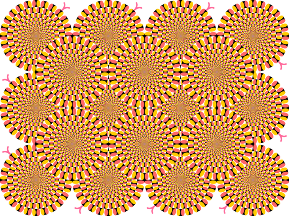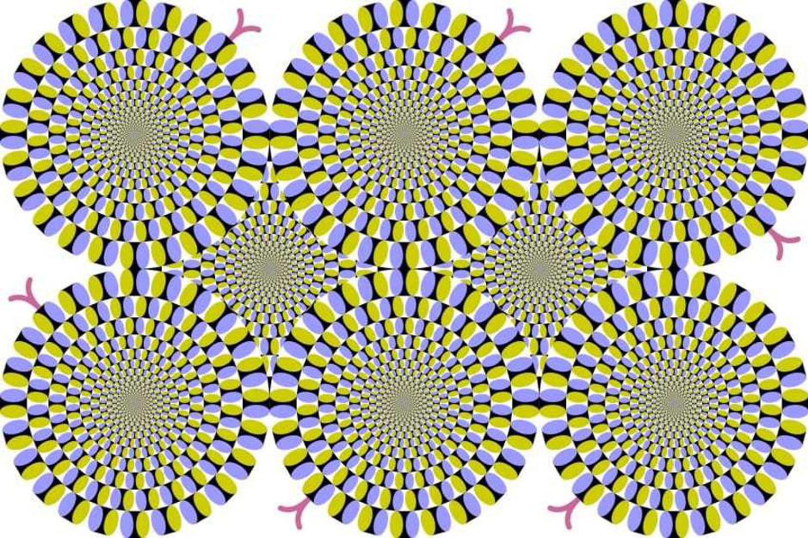 Određena kombinacija boja i bijele pozadine prevarit će oči, pa slike koje su nepomične izgledaju kao da se miču. Ako vam ne izgledaju kao da su pokretne, pokušajte brzo treptati.