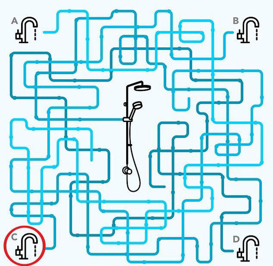 Dok su zagonetke koje izazivaju igrače da uoče skriveni predmet popularne, ova sljedeća zagonetka nudi nešto malo drugačije, kako piše Daily Mail. Cilj je zaključiti koja slavina je pravi izvor vode u tušu, a uključuje praćenje izvora vode duž cijevi koja vodi natrag do tuša u središtu mozgalice, a brzina je bitna.