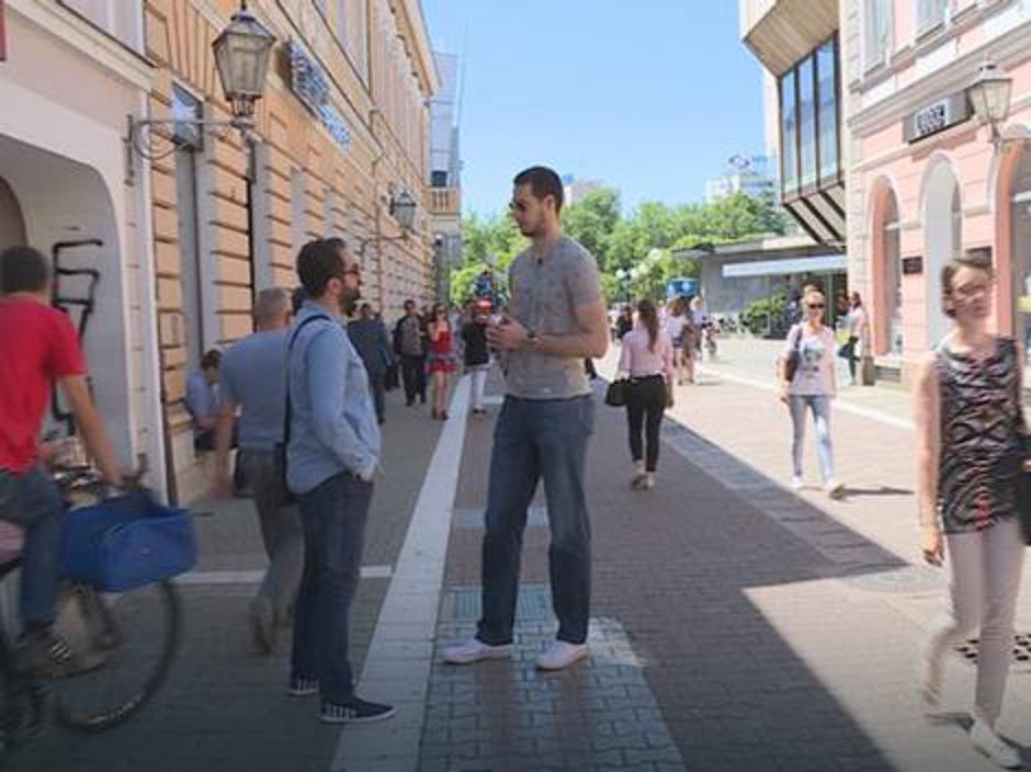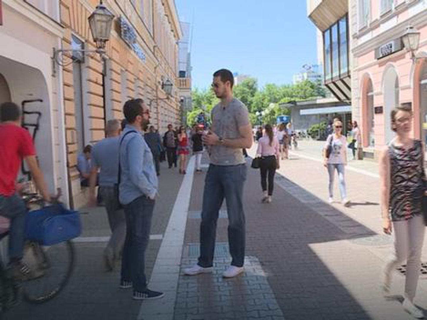 Prolaznici mu prilaze kako bi se fotografirali, ali i dobacuju, jer ga smatraju pravom atrakcijom.