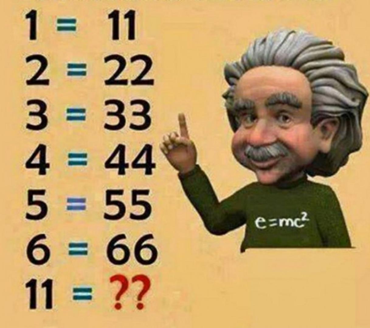 Ako je 1=11, 2=22, 3=33, 4=44, 5=55, 6=66, čemu je jednako 11?