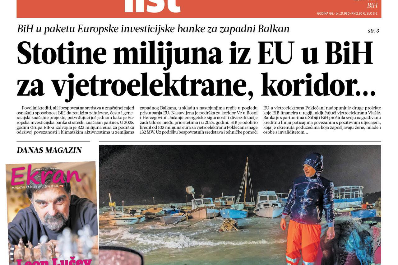 Večernji list, 6. veljače 2026. Aktualno u petak 6. veljače: EU milijuni, Starlink i olujno nevrijeme...
