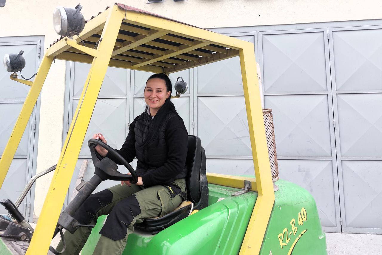 Luciju smo zatekli pri vožnji viličara, ali i drugih strojeva, u čemu se spretno snalazila i sa širokim posavskim osmijehom očito sve bezbrižno obavljala.