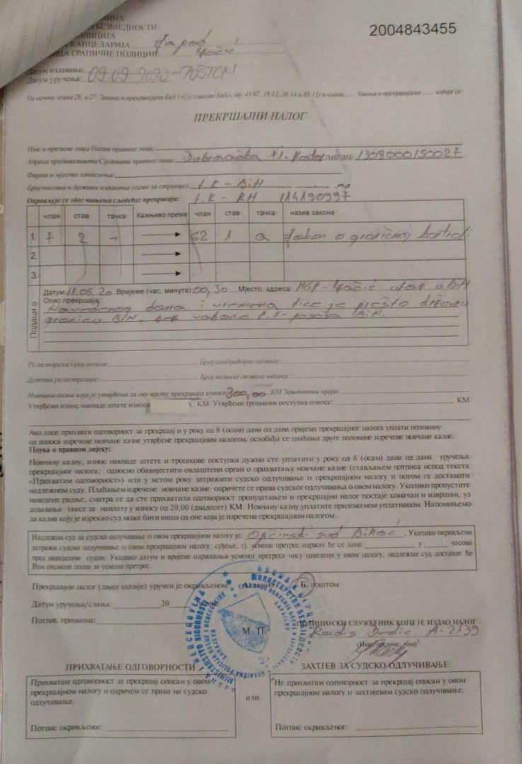 “Ne razumijem kakva je to vrsta diskriminacije prema ljudima koji imaju hrvatske osobne iskaznice, ali i bh. osobnu iskaznicu, a koje su ranije vrijedile za prelazak granice. Za mene je ovo očita diskriminacija, a postoje i druge prijeporne stvari iz ovoga rješenja”, navodi ovaj mladić. On dodaje kako je nejasno zašto su u dijelu prekršajnoga naloga u kojemu na obrascu piše “broj pasoša i države izdavanja (koji se odnosi samo za strance)” upisani podaci s njegove osobne iskaznice izdane u BiH. Nije jasno kako netko može biti stranac, a da su mu upisani podaci osobne iskaznice BiH?! S druge strane, u objašnjenju prekršajnoga naloga “okrivljuje se zbog činjenja sljedećeg prekršaja” ispisana je osobna iskaznica Republike Hrvatske i naveden je broj.