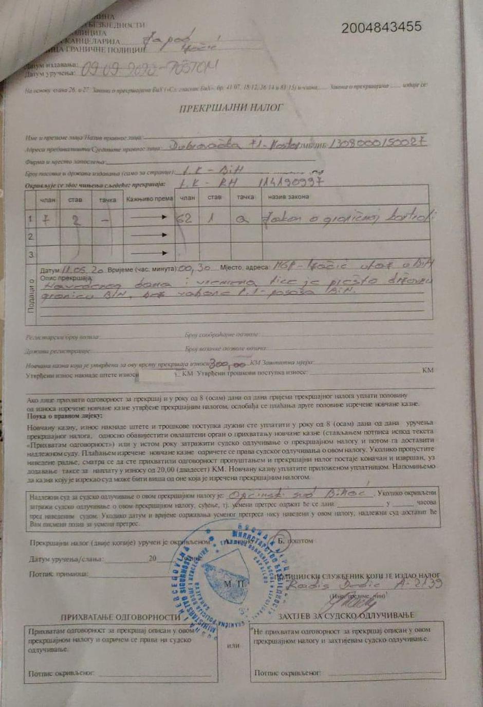 “Najprije ništa nisam razumio jer je rješenje napisano na ćiriličnome obrascu uz popunjene dijelove na bosanskome jeziku. Naravno da sam ostao šokiran”, rekao je ovaj mladić koji tvrdi kako je još jedan njegov kolega, od ukupno trojice, s kojim je ušao u zemlju dobio ovakvu “čestitku”.