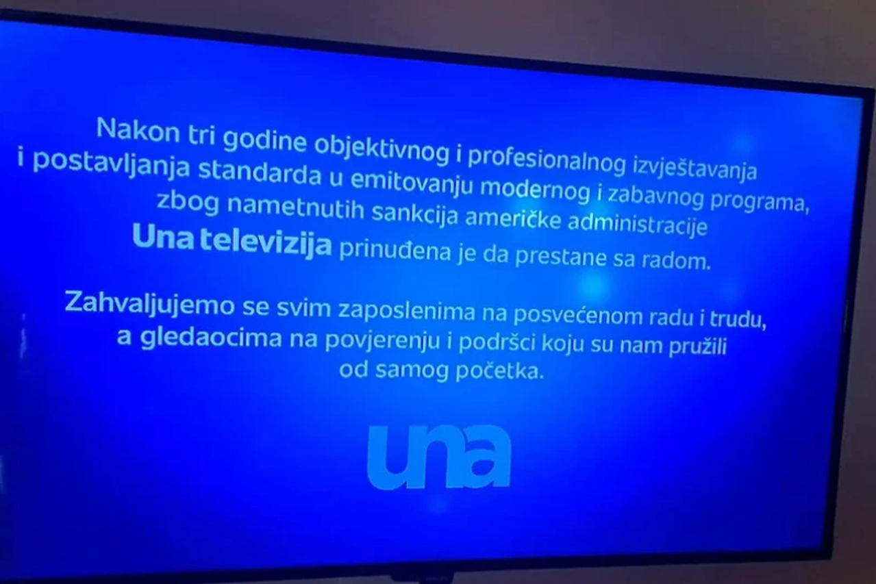 "Nakon tri godine objektivnog i profesionalnog izvještavanja i postavljanja standarda u emitiranju modernog i zabavnog programa, zbog nametnutih sankcija američke administracije Una televizija prinuđena je da prestane sa radom. Zahvaljujemo se svim zaposlenima na posvećenom radu i trudu, a gledatelkjma na povjerenju i podršci koju su nam pružili od samog početka", navodi su informaciji gledaocima UNA TV.