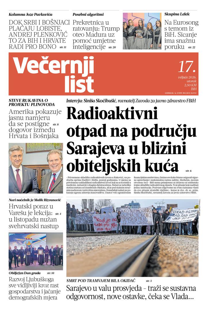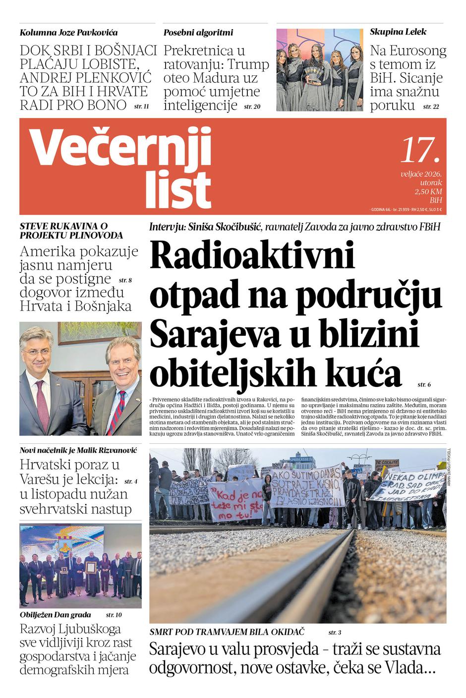 Tiskano izdanje Večernjeg lista BiH i u utorak, 17. veljače 2026. godine, donosi zanimljivo štivo - aktualne teme, analize, intervjue...