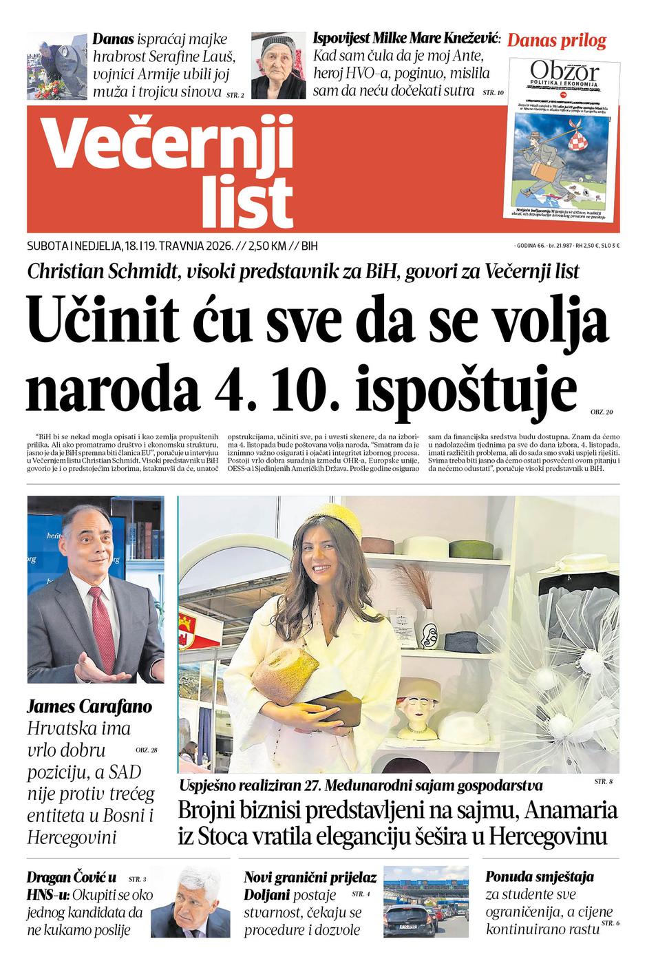Donosimo teme koje oblikuju svakodnevicu, ali i budućnost građana BiH, ali i regije, od kandidata za izbore, graničnog prijelaza, ponuda smještaja za studente, plaća i troškova života... pa do sajma gospodarstva u Mostaru, ispovijesti majke heroja Domovinskog rata, priče o povratku ... Tu je i prilog Obzor!
