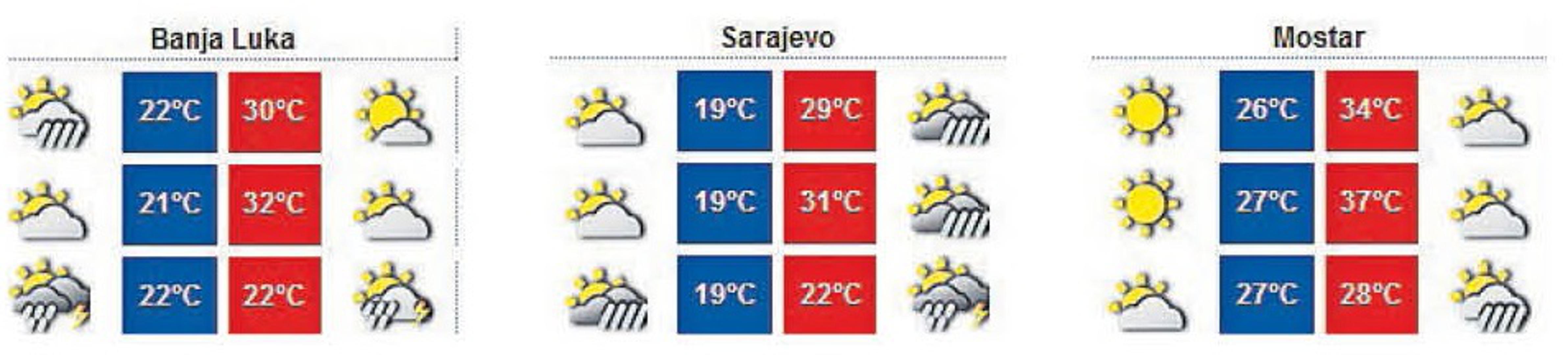 Toplinski val trajat će još od 7 do 10 dana. Tom rečenicom sve smo rekli, a detalji nisu ništa bolji, iako meteorolozi očekuju za vikend nešto prolazne kiše, pa i kratkotrajno zahladnjenje u dijelovima Bosne, piše Večernji list BiH.