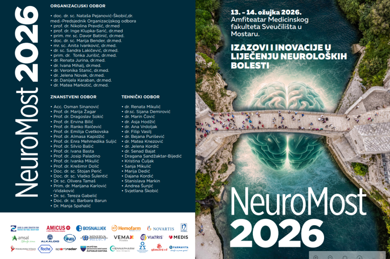Neurološki simpozij s međunarodnim sudjelovanjem pod nazivom "NeuroMost 2026. - Izazovi i inovacije u liječenju neuroloških bolesti" održat će se 13. i 14. ožujka u Mostaru u organizaciji Medicinskog fakulteta Sveučilišne kliničke bolnice (SKB) Mostar.