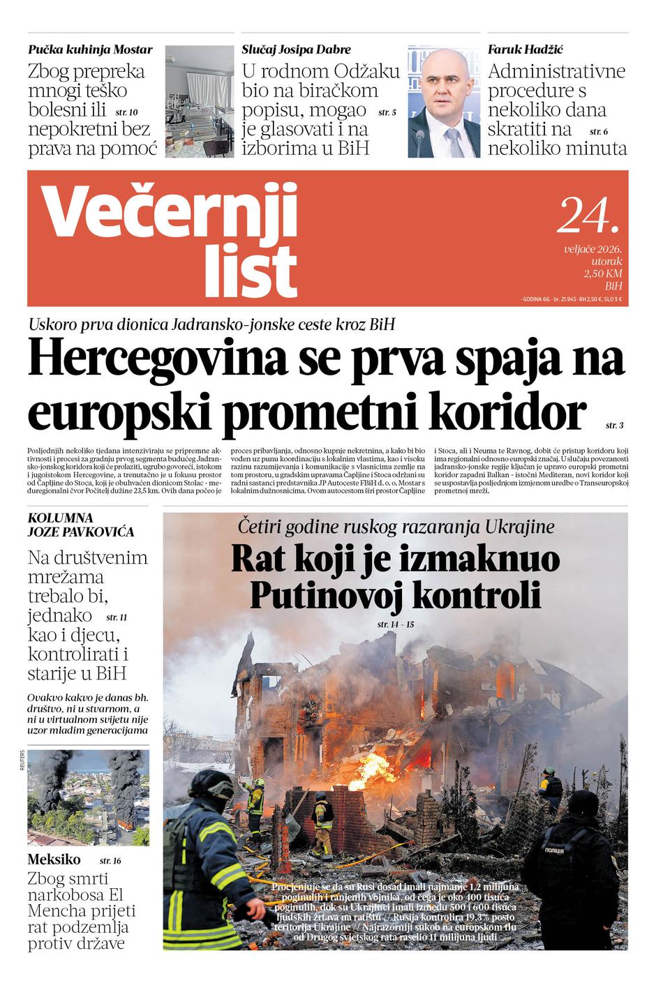 📢 U utorak u tiskanom izdanju Večernjeg lista BiH (24. veljače 2026.)
