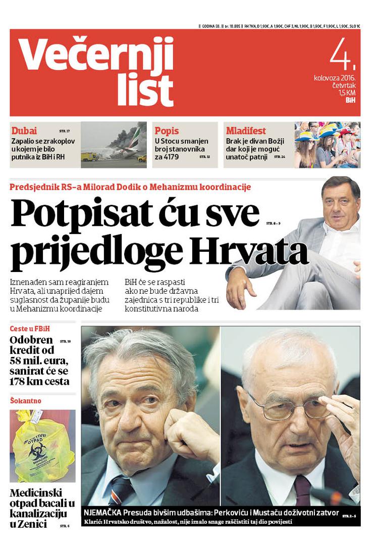 U Večernjaku čitajte veliki intervju s Miloradom Dodikom; donosimo i detalje presude udbašima u Njemačkoj