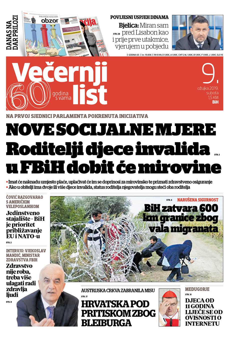 U Večernjem listu BiH u tiskanom izdanju u subotu, 9. ožujka 2019. godine čitajte: