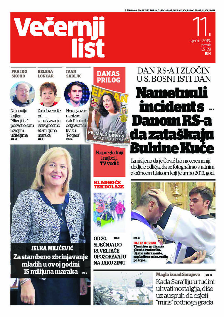 U Večernjem listu BiH u tiskanom izdanju u petak, 11. siječnja 2019. godine čitajte: