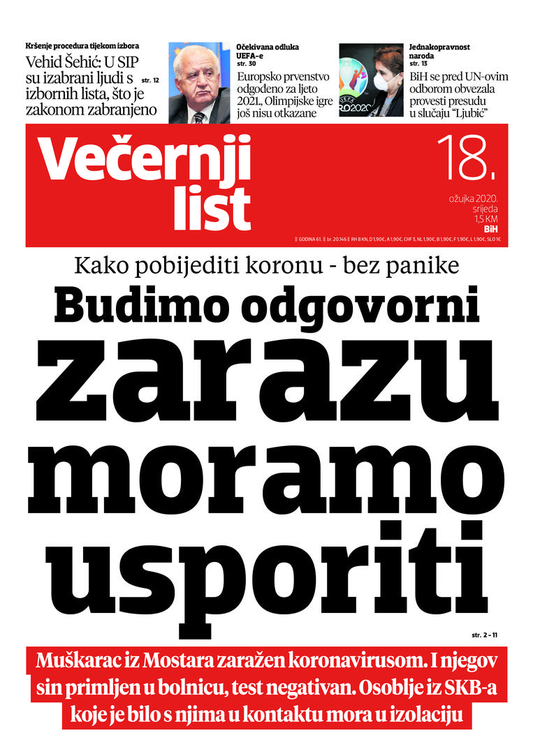 U Večernjem listu BiH u tiskanom izdanju u srijedu, 18. ožujka 2020. godine pročitajte: