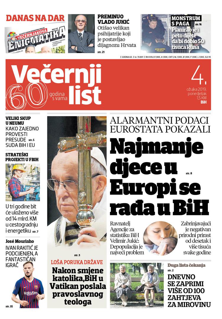 U Večernjem listu BiH u tiskanom izdanju u ponedjeljak, 4. ožujka 2019. godine čitajte: