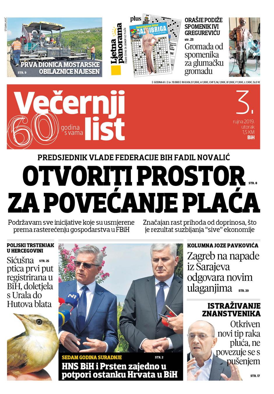 U Večernjem listu BiH u tiskanom izdanju u utorak, 3. rujna 2019. godine pročitajte: