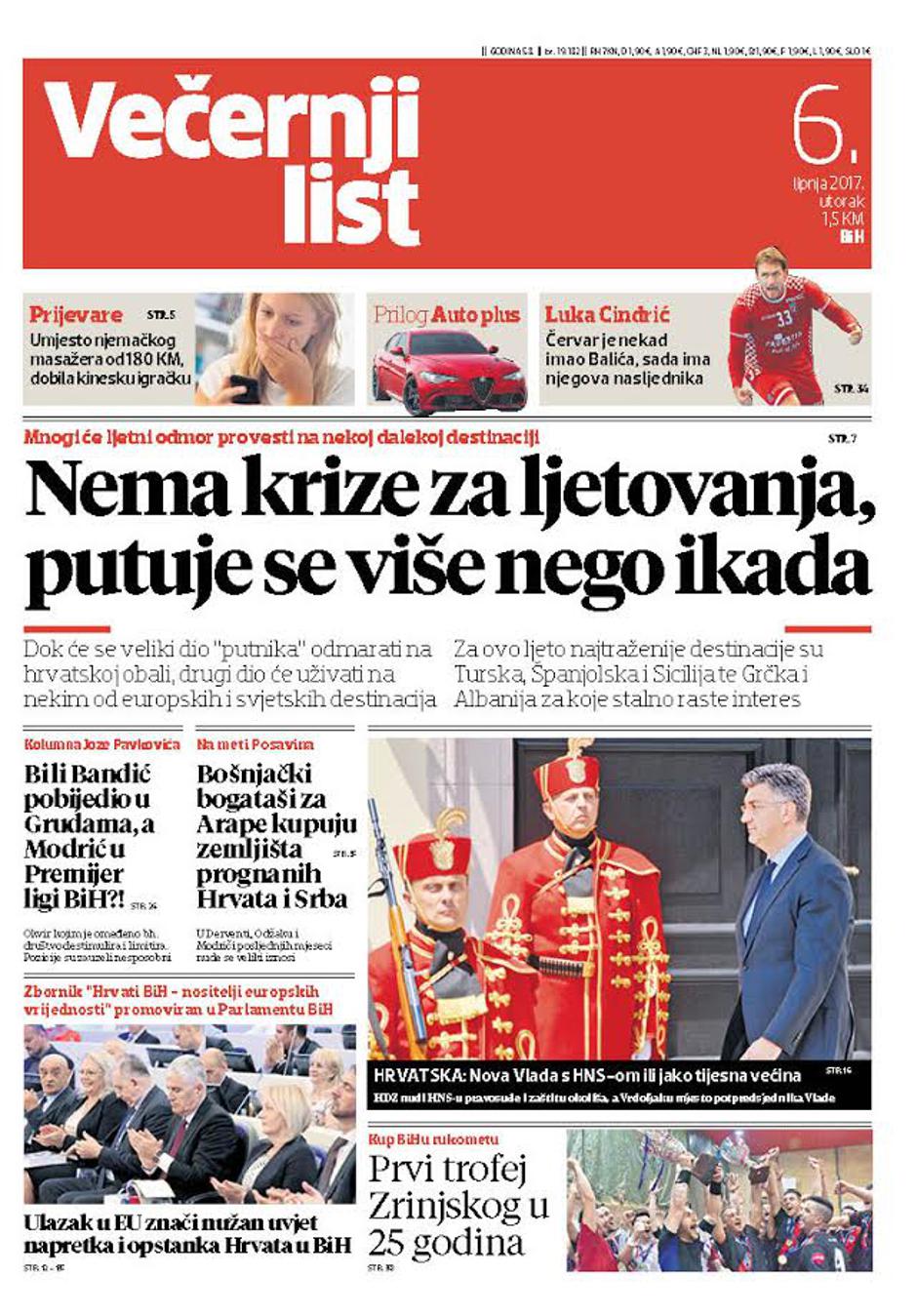 U tiskanom izdanju Večernjeg lista BiH, u utorak 6. lipnja 2017. godine, čitajte: