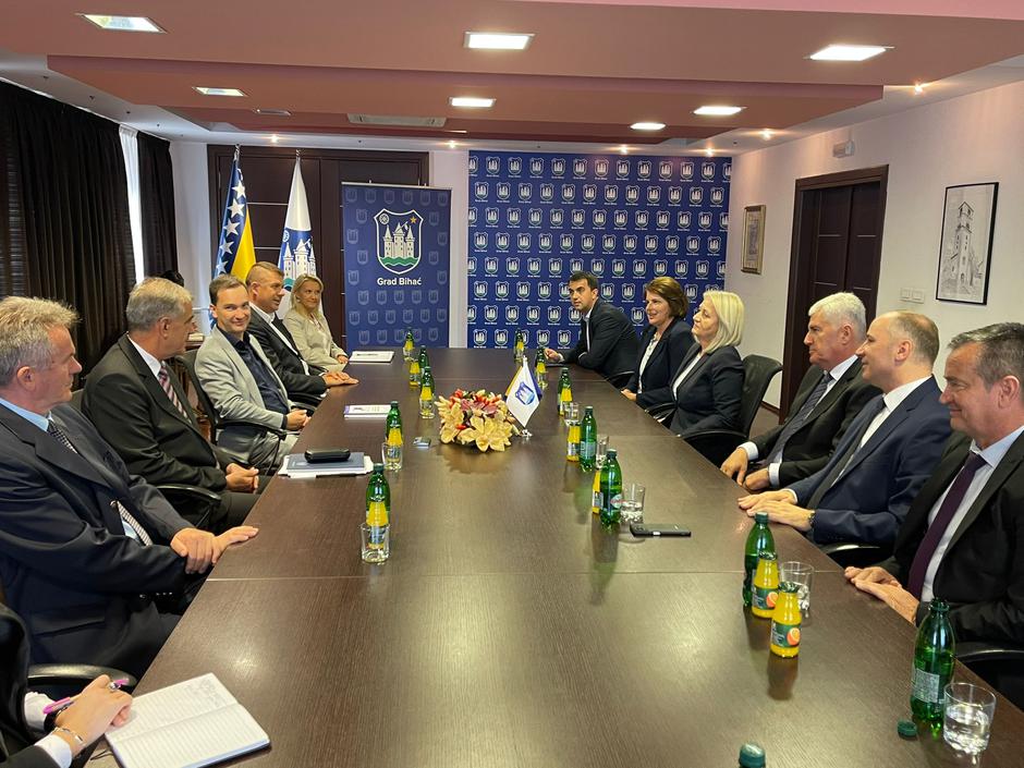 Prilikom posjete Unsko-sanskoj županiji kandidatkinja Hrvatskog narodnog sabora BiH za hrvatskog člana Predsjedništva BiH Borjana Krišto i predsjednik Hrvatskog narodnog sabora BiH dr. Dragan Čović danas su se susreli u Gradskoj upravi Bihać sa gradonačelnikom Šuhretom Fazlićem i njegovim suradnicima.