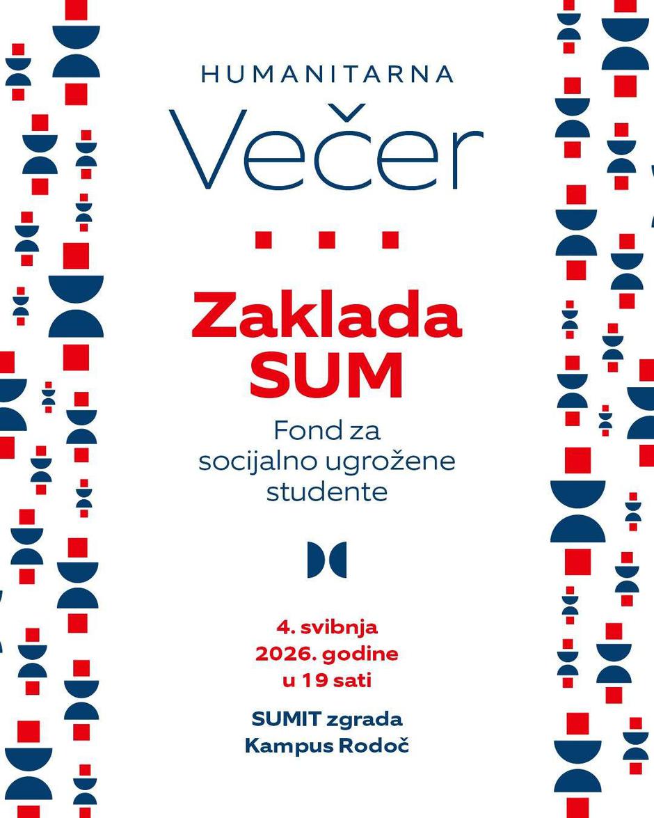 Zaklada SUM organizira humanitarnu večer koja će se održati 4. svibnja 2026. godine s početkom u 19 sati u SUMIT zgradi na kampusu u Rodoču. Zaklada već četvrtu godinu sustavno pruža potporu socijalno ugroženim studentima, studentima s invaliditetom te studentima bez odgovarajuće roditeljske skrbi, omogućujući im nastavak obrazovanja i aktivno sudjelovanje u akademskom životu. U protekle tri godine kroz rad Zaklade stipendirano je 126 studenata, a ukupno je dodijeljeno 234.000 konvertibilnih maraka.