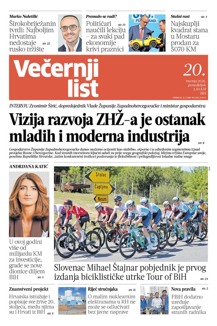 Novo izdanje Večernjeg lista za ponedjeljak, 20. travnja donosi brojne zanimljive i aktualne teme i intervjue.