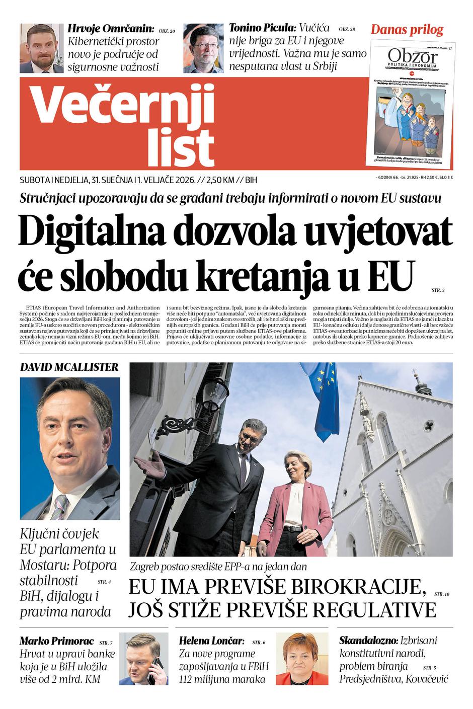 Uz teme koja će obilježiti godine pred nama, u novom dvobroju čitajte i važne političke poruke iz Mostara, aktualne ekonomske teme, ali i priče koje otvaraju ključna pitanja stabilnosti, dijaloga i budućnosti BiH i regije. Donosimo i prilog Obzor s nizom fantastičnih tema.