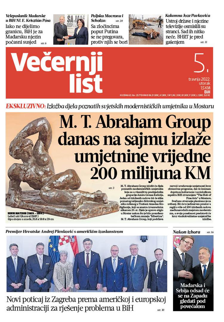 U Večernjem listu BiH u tiskanom izdanju u utorak, 5. travnja 2022. godine pročitajte: