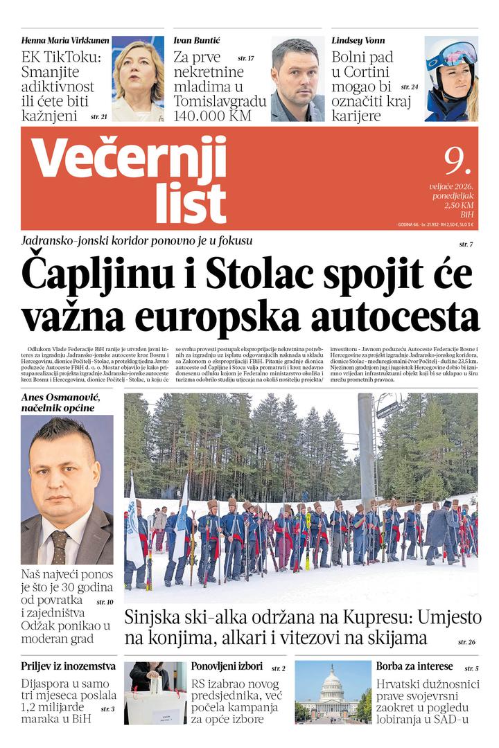 U nastavku pročitajte što vam donosi tiskano izdanje Večernjeg lista u ponedjeljak, 9. veljače...