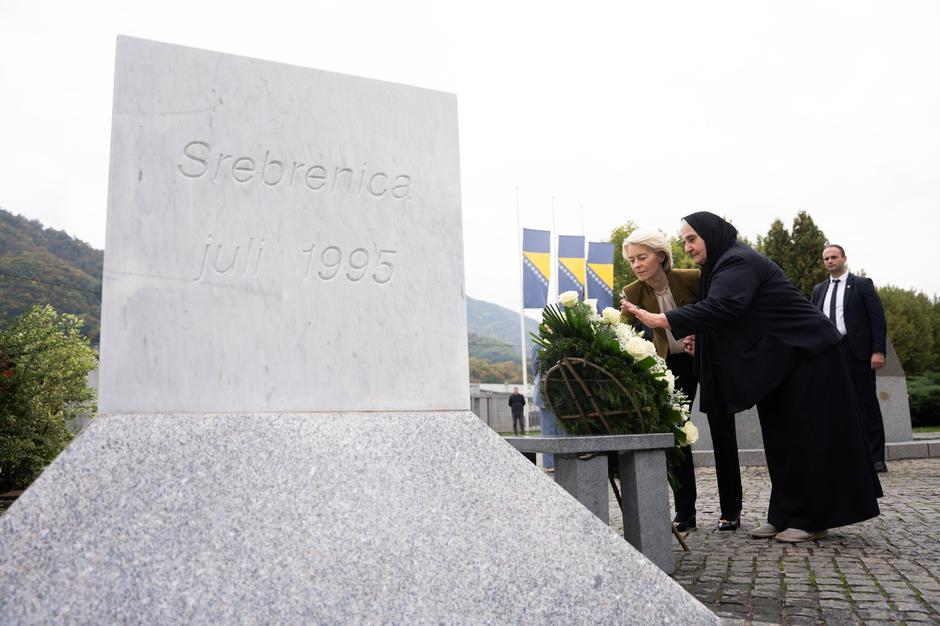 - Naša je dužnost čuvati istinu kako bi buduće generacije znale što se dogodilo u Srebrenici. Europska unija će uvijek pamtiti genocid i nikada nećemo dopustiti da se piše nova povijest - poručila je, naglasivši važnost pomirenja i priznavanja utvrđenih činjenica. Pozvala je sve političke lidere u BiH i regiji da slijede taj primjer jer je to, kako je istaknula, jedini put prema mirnoj i stabilnoj budućnosti. Predsjedateljica Vijeća ministara Bosne i Hercegovine Borjana Krišto izrazila je zahvalnost predsjednici Europske komisije na podršci i naglasila da BiH ostaje čvrsto opredijeljena za europski put.