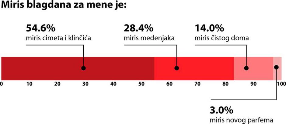 Hrvati Božić vole svim osjetilima, a uz blagdanski stol na kojem ćemo i ove godine uživati u nekim od omiljenih okusa, mirisi su uvijek važan dio blagdanskog ugođaja i doživljaja. Možete li zamisliti blagdanske dane bez mirisa cimeta ili klinčića? Ako je vaš odgovor ne, niste jedini jer je čak 54,6% ispitanika kao miris blagdana odabralo upravo cimet i klinčić. Za 28,6% Story.hr čitatelja i čitateljica koji su sudjelovali u našoj anketi, miris blagdana je miris medenjaka, za 14% miris čistog doma, a za 3% miris novog parfema.