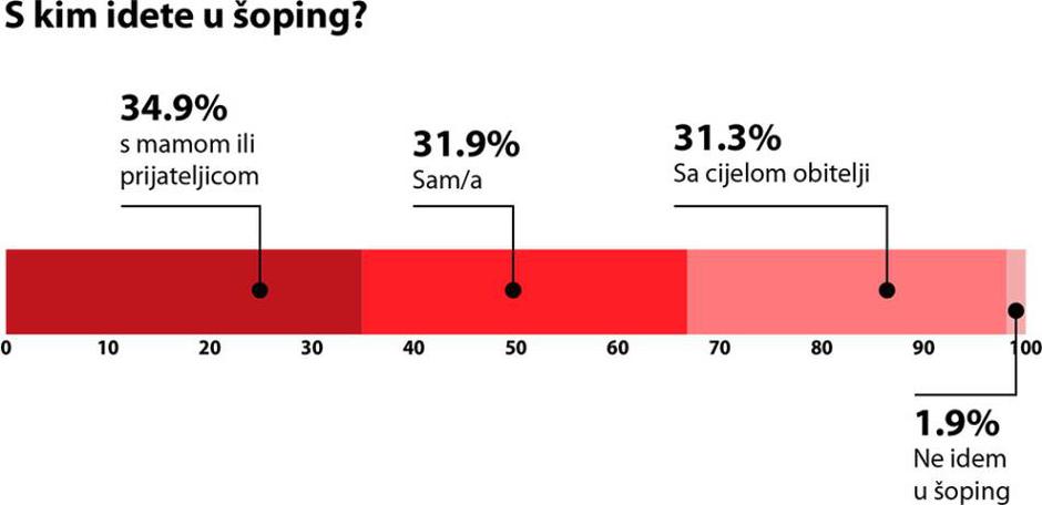 Osim što vole obiteljska druženja tijekom blagdanskog razdoblja, Hrvati vole i blagdanski shopping pretvoriti u druženje. Na pitanje s kim idete u shopping, više od jedne trećine ispitanika odgovorilo je s mamom ili prijateljicom (34,9%), trećina u shopping vodi cijelu obitelj (31,3%), dok trećina ipak voli sama uživati u shopping. Samo 1,9% ispitanika ne ide u shopping.