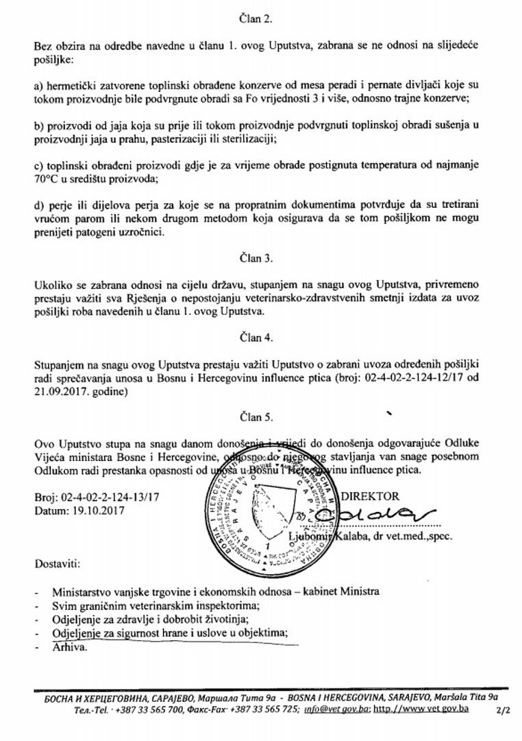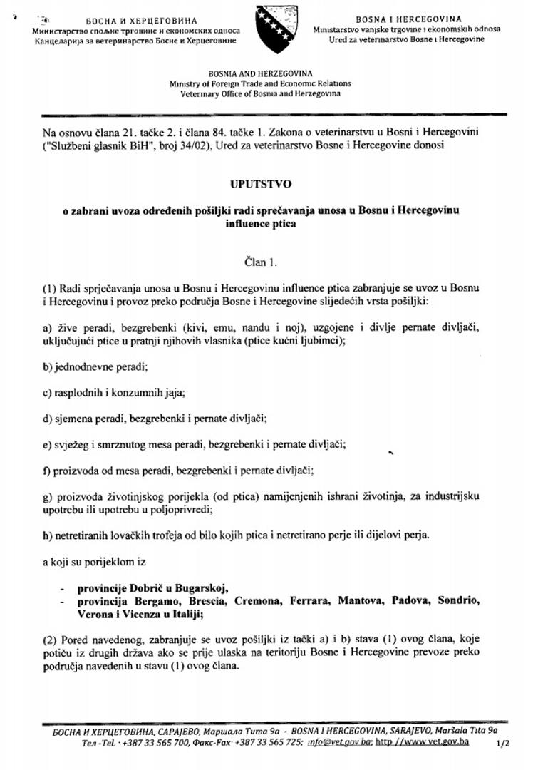 Zabranjen uvoz peradi iz Bugarske i Italije u BiH