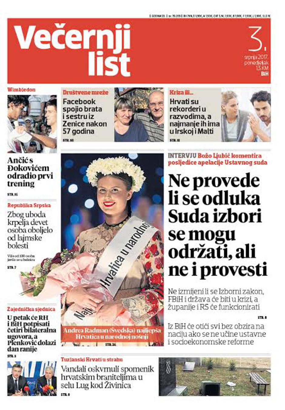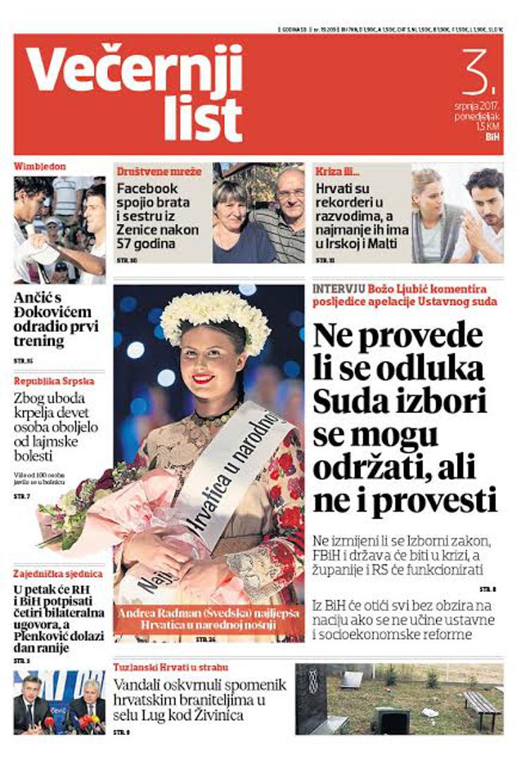 U Večernjem listu BiH, u tiskanom izdanju u ponedjeljak 3. srpnja 2017. godine čitajte: