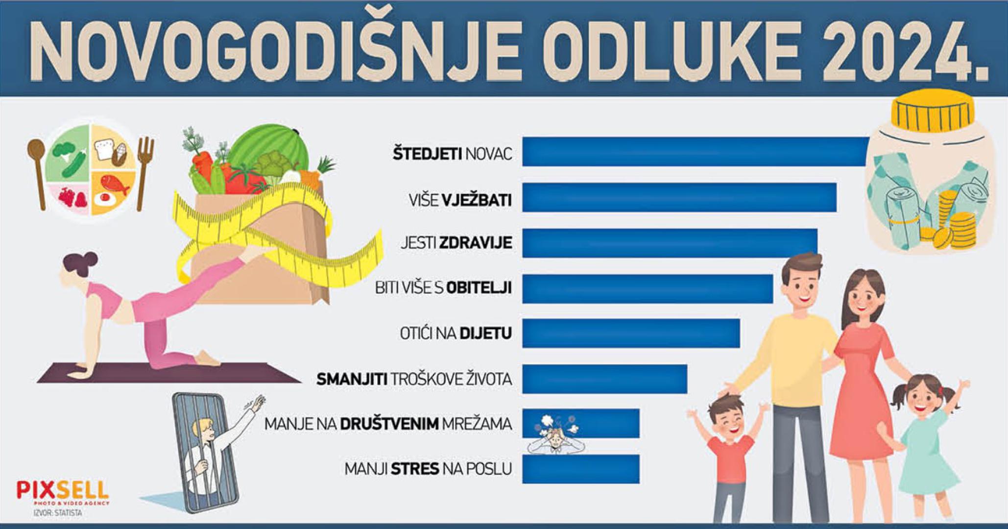- Jedan od najčešćih izraza je "Nova godina, novi ja", često praćen odlukom da se krene putem zdravijeg načina života uz redovito vježbanje - kaže nam za početak. Nadalje objašnjava kako početi vježbati te kako održati dosljednost kako bismo postigli, zatim i zadržali željene promjene tijekom cijele godine te nam je iznio i konkretne brojke koliko ljudi uspije ostvariti ono što je zacrtalo. - Prema rezultatima jedne američke studije, 55,2% odluka povezano je sa zdravljem.